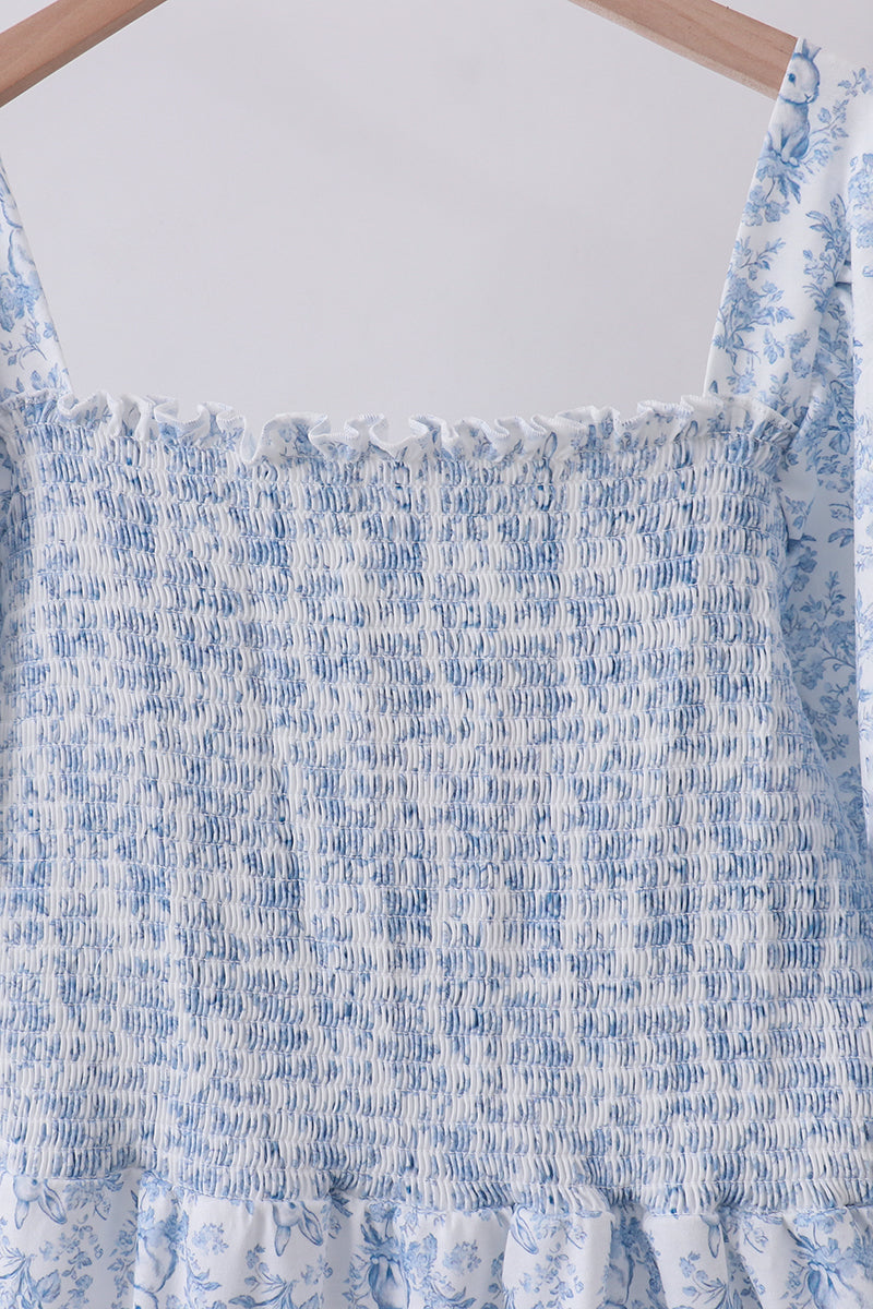 Twirl into spring in this charming navy dress that's equal parts sweet and sophisticated. Delicate floral details dance across the bodice, while romantic puff sleeves add a touch of whimsy to your everyday look. The smocked waist creates a flattering silhouette that moves with you, whether you're heading to brunch or a garden party. Perfect for anyone who loves feminine style with a playful edge.